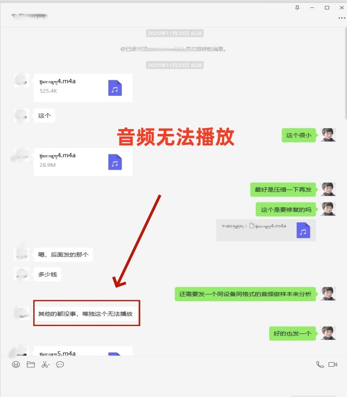 外国客户网上咨询了解后,传过来一个音频文件,客户说音频显示无效无法播放,与客户沟通好后,工程师在技术分析后,音频文件完美修复。
