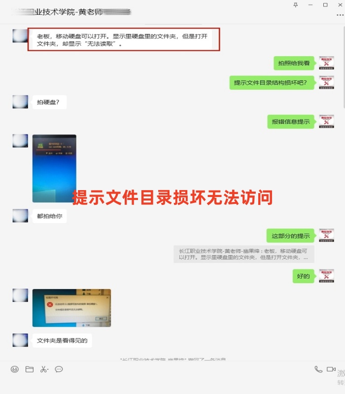 长江职业技术学院的老师送过来一个西数2T移动硬盘,客户说移动硬盘可以打开,里面的文件夹打不开,显示文件目录损坏无法访问,经检测硬盘磁头坏了一个导致文件无法读取,与客户沟通好后,工程师在无尘工作室更换好的磁头后,再在PC3000技术处理后,成功读取文件镜像,数据完美恢复。